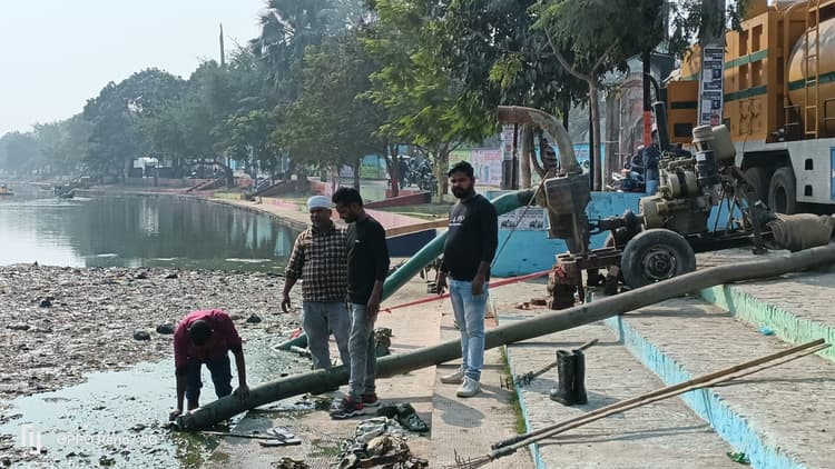 Darbhanga News: दरभंगा. मुख्यमंत्री नीतीश कुमार के आगामी 11 जनवरी को प्रस्तावित निरीक्षण को लेकर हराही तालाब की सफाई का काम युद्धस्तर पर चल रहा है. तालाब को नया लुक देने पर मंथन करने के साथ ही तैयारी में जिला व नगर निगम प्रशासन जुट गया है. लगातार मुआयना के साथ संबंधित कर्मचारियों को निर्देश दिये जा रहे हैं. रविवार को नगर आयुक्त राकेश कुमार गुप्ता, सदर एसडीओ विकास कुमार, पुल निर्माण विभाग के एइ कुंदन कुमार, बुडको के डीपीडी राकेश कुमार साफी, जेइ जितेंद्र कुमार ने हराही, दिल्ली मोड़ बस स्टैंड व कर्पूरी चौक का निरीक्षण किया. हराही पर चल रहे कार्यों की एइ सउद आलम, चेतन आनंद, जेइ उदयनाथ झा, ज्योति रानी ने जानकारी ली. इस दौरान कंप्यूटर प्रशाखा के शिवशंकर सिन्हा, वीरेंद्र झा, जोन प्रभारी गौतम राम आदि उपस्थित थे.