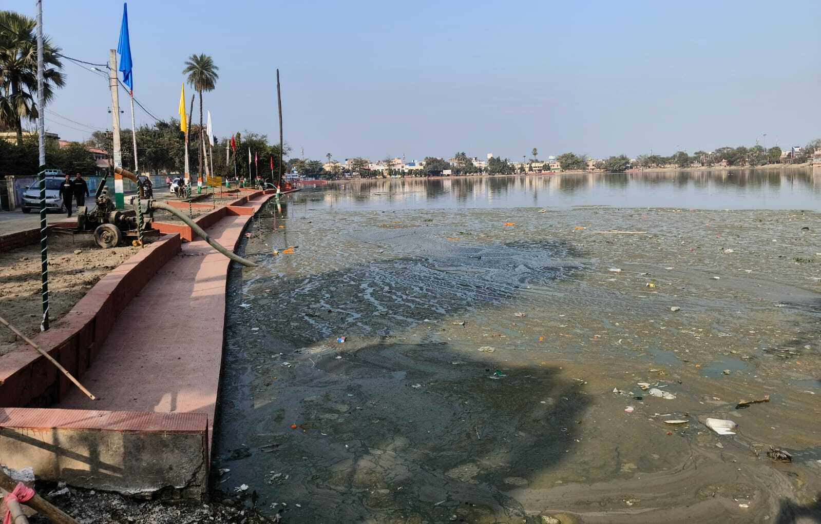 Darbhanga News: दरभंगा. सफाई के सरकारी सिस्टम को हराही पोखर ने सिरे से नकार दिया है. पुरानी राह पर फिर से यह तालाब चल निकली है. पोखर में फिर गाद की परतें छानी शुरू हो गयी है. सीएम के जाते ही नगर निगम प्रशासन ने एक तरह से मुंह फेर लिया है. कार्यक्रम समाप्त होते ही दोपहर बाद से पंपिंग सेट, एरिएटर, फाउंटेन को बंद कर दिया गया है. इसका नतीजा है कि तालाब का पानी गाढ़े हरे रंग में परिवर्तित होने लगा है. स्थिति विकट पुन: होने लगी है, जबकि कार्यक्रम के पूर्व तालाब की स्थिति को सुधारने व सौंदर्यीकरण पर नगर निगम प्रशासन ने लाखों रुपये पानी के तरह बहा दिया. निगम ने पूरी ताकत झोंक रखी थी. इसका परिणाम भी सामने आया. तालाब के गाद से उठते दम घोंटू बदबू से जहां सांस लेना मुश्किल हो रहा था, वहां लोग सेल्फी लेने लगे थे. इस बाबत नगर आयुक्त राकेश कुमार गुप्ता ने संपर्क करने पर कहा कि कौन सा उपकरण कौन खोलकर ले गया पता नहीं. एरिएटर दो घंटे चलेगा और दो घंटे बंद रहेगा.