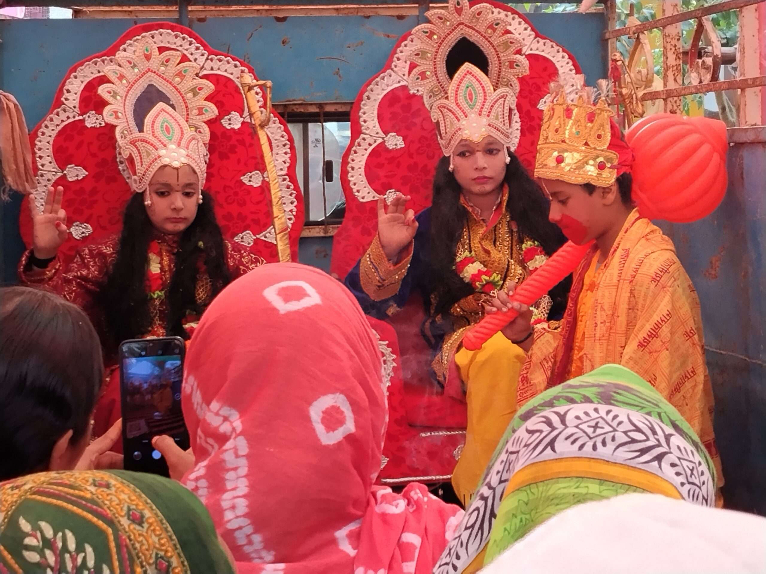 बैंड बाजे और रंग-बिरंगे परिधानों में सजे श्रद्धालुओं के साथ पालकी पर सवार भगवान राम और अन्य बरातियों को देखने के लिए जगह-जगह श्रद्धालुओं की भीड़ उमड़ पड़ी. श्रद्धालुओं ने जगह-जगह भगवान पर पुष्प वर्षा की. आरती उतारी. दोपहर बाद अहल्यास्थान परिसर से निकली भगवान राम की यह बरात, गांधीनगर, रामनगर, अहियारी व चहुटा की गलियों से गुजरते हुए देर शाम वापस अहल्यास्थान स्थित सिया-पिया निवास पहुंची.