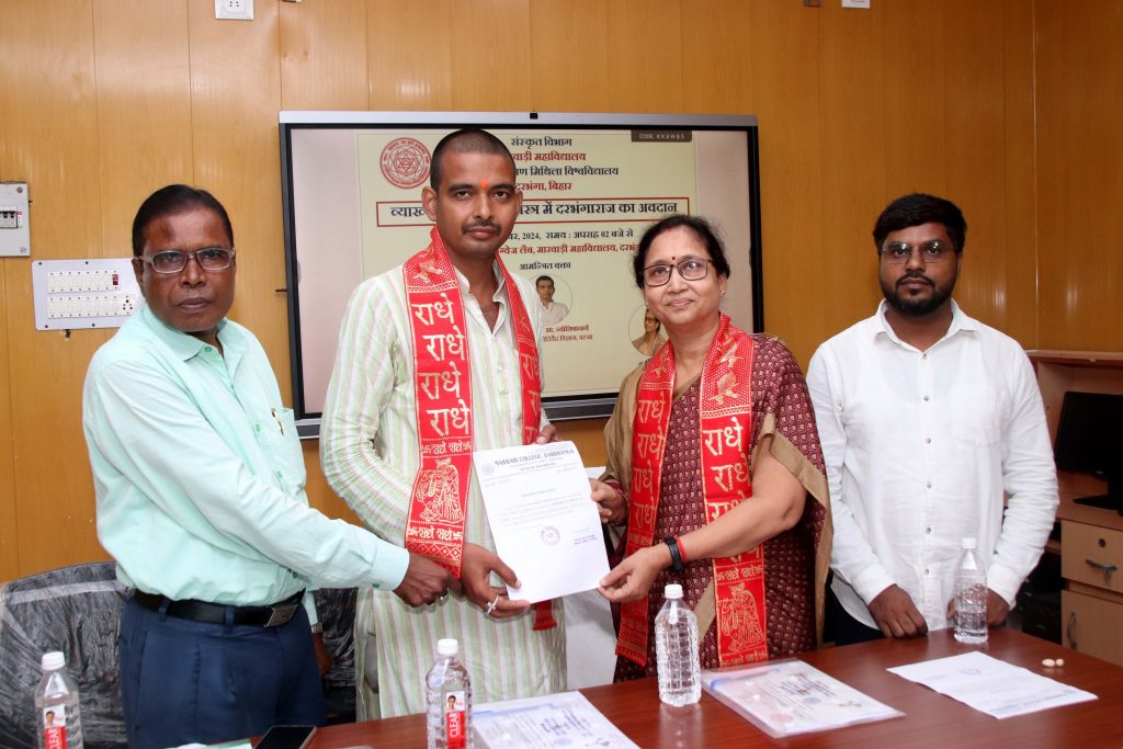 Darbhanga news:ज्योतिष शास्त्र में दरभंगा राज का अवदान विषय पर मारवाड़ी कॉलेज में मंगलवार को व्याख्यान हुआ. ज्योतिर्वेद विज्ञान पटना के उप निदेशक डॉ राघव नाथ झा ने दरभंगा राज के सांस्कृतिक और शैक्षिक योगदान की सराहना की.