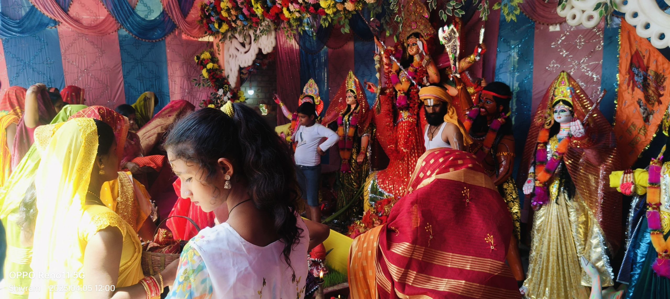 भगवती के आठवें स्वरूप महागौरी की हुई पूजा Darbhanga : दरभंगा. वासंती नवरात्र के महाअष्टमी तिथि पर शनिवार को पूजन स्थलों पर भक्तों की भीड़ उमड़ पड़ी. सार्वजनिक पूजा पंडाल सुबह से लेकर देर रात तक भक्तों से गुलजार बने रहे. श्रद्धालुओं ने माता के दर्शन-पूजन के संग सपरिवार कल्याण कामना का आशीर्वाद मांगा. इस दौरान महिला श्रद्धालुओं ने माता का खोईंछा भरा. कई भक्त उपवास में रहे. वहीं कन्या पूजन कर उन्हें मीठा भोजन कराया. इससे पूर्व पूजन स्थल पर माता के आठवें स्वरूप महागौरी की पूजा-अर्चना विधानपूर्वक की गयी. बता दें कि रविवार को माता के नौवें स्वरूप सिद्धिदात्री की आराधना की जायेगी. विजयादशमी सोमवार को होगा. बेनीपुर प्रतिनिधि के अनुसार, चैती नवरात्र व रामनवमी पर्व को लेकर सम्पूर्ण क्षेत्र में भक्तिमय माहौल है. मां दुर्गा सप्तशती का श्लोक गुंजायमान होने लगा है. शाम ढलते ही ग्रामीण क्षेत्र की महिलाएं रंग-बिरंगी परिधानों में सजकर विभिन्न पूजा पंडालों में संध्या दीप जलाने के लिए जमा हो जाती हैं. प्रखंड क्षेत्र के सज्जनपुरा, कन्हौली, पोहद्दी, बलहा, शिवराम, उफरदाहा, रमौली, बहेडा सहित अन्य गांवों में पूजा पंडाल को आकर्षक ढंग से सजाया गया है. यहां दिनभर कुंवारी भोजन के साथ-साथ मां का खोईंछा भरने के लिए महिलाओं की भीड़ लगी रहती है. दूसरी ओर रविवार को रामनवमी पर्व को लेकर ग्रामीण क्षेत्रों में जगह-जगह अष्टयाम व नवाह संकीर्तन महायज्ञ का आयोजन किया गया है. बहेड़ा बाजार अवस्थित महावीर मंदिर परिसर में 47वां नवाह यज्ञ में जिला समेत प्रदेश के विभिन्न जगहों के साथ-साथ पड़ोसी देश नेपाल के भी कीर्तन मंडली शामिल हो रहे हैं. इधर पोहद्दी आजाद चौक अवस्थित बजरंगबली मंदिर परिसर में अष्टयाम कार्यक्रम का आयोजन किया गया है. यहां रविवार को भव्य शोभा यात्रा निकाली जायेगी. वहीं बहेड़ा बजरंगबली मंदिर परिसर में नवाह समापन के बाद सोमवार को विशाल शोभा यात्रा निकाली जायेगी. इधर चैती नवरात्र व रामनवमी पर्व को लेकर स्थानीय प्रशासन शांति व्यवस्था कायम रखने के लिए प्रतिबद्ध है. सभी पूजा स्थलों के साथ-साथ बहेड़ा थाना परिसर में शांति समिति की बैठक आयोजित कर प्रशासनिक पदाधिकारी एवं पुलिस पदाधिकारी द्वारा क्षेत्र में शांति व्यवस्था कायम रखने की अपील लोगों से की गयी है. इसके अलावा सभी संवेदनशील स्थानों पर जिला स्तर से दंडाधिकारी के नेतृत्व में पुलिस बल तैनात कर दिया गया है. तारडीह प्रतिनिधि के अनुसार, वासंती नवरात्र के आठवें दिन महागौरी स्वरूप की पूजा-आराधना की गयी. वहीं भगवती दुर्गा के दर्शन-पूजन के लिए भक्तों की भीड़ सभी पूजा पंडालों में लगी रही. महिला भक्तों की भी भगवती का खोईंछा भरने, कुंवारी कन्या भोजन कराने व सांयकाल 
