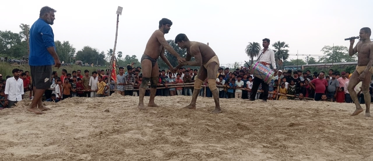 Darbhanga News: जाले. जोगियारा स्टेशन परिसर स्थित जाले पंचमुखी हनुमान मंदिर की पहली वर्षगांठ पर रविवार को दूसरे दिन भी दंगल हुआ. कुश्ती देखने पंचायत सहित आसपास से बड़ी संख्या में लोग पहुंचे. रेफरी बक्सर निवासी साहब सिंह पहलवान की देख-रेख में पहले राउंड में झांसी के हलचल पहलवान व नेपाल नवलपरासी के राहुल थापा के बीच मुकाबला हुआ. इसमें नेपाल के पहलवान राहुल थापा ने दूसरे दिन भी झांसी के पहलवान हलचल को पछाड़ दिया. वहीं दूसरे राउंड में बक्सर के बाबर पहलवान व झांसी के मटरु पहलवान के मुकाबले में बाबर ने मटरु को पराजित कर दिया. तीसरे राउंड में राजस्थान के गामा पहलवान ने नेपाल के राहुल थापा को पछाड़ दिया. चौथे राउंड में गाजीपुर के मनोज पहलवान व हरियाणा के नरसिंह्मा के बीच कुश्ती हुई, जिसमें मनोज ने नरसिंह्मा को चित्त कर दिया. पांचवें व अंतिम राउंड में गाजीपुर के संजय पहलवान ने झांसी के गामा को पछाड़ दिया.