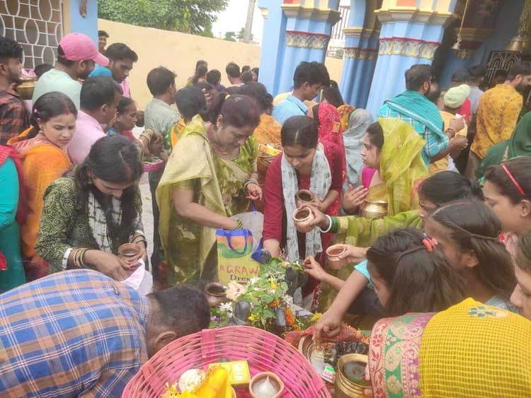दरभंगा. सोमवार की सुबह शहरवासियों की नींद देवाधिदेव महादेव के जयघोष से खुली. सिमरिया गंगाघाट सहित विभिन्न पवित्र घाटों से जल लेकर शिवालय की ओर बढ़ रहे कांवरियों के जयघोष से दिन की शुरूआत हुई. वैसे आधी रात बाद से ही कांवरियों का जत्था शहर की सड़कों से गुजरने लगा था. पारंपरिक नचारी, महेशवाणी के साथ भक्ति गीतों के बोल से सावन की पहली सोमवारी की भक्तिमय शुरूआत हुई. शिवालयों में मुंह अंधेरे से ही भक्त पहुंचने लगे थे. फूल, बेलपत्र, चंदन आदि से पूजन कर शिव लिंग पर श्रद्धालुओं ने जलार्पण किया. सपरिवार स्वस्थ एवं आनंद से जीवन व्यतीत करने का आशीर्वाद मांगा. इसे लेकर माधवेश्वर स्थान में भक्तों की लंबी कतारें लगी रही. वहीं हजारीनाथ, पंचानाथ, केएम टैंक स्थित शिवालय समेत तमाम शिव मंदिरों में भक्तों के पहुंचने का सिलसिला दोपहर बाद तक जारी रहा. इसमें महिलाओं की संख्या अधिक नजर आयी. युवतियों ने आदर्श पति की कामना के साथ जहां व्रत रख पूजन किया, वहीं अन्य श्रद्धालुओं ने आशीर्वाद बनाये रखने की मंगल कामना के साथ सोमवारी का उपवास रखा. संध्याकाल भगवान शिव का शृंगार किया गया. कच्चे फूलों से भगवान का शृंगार अलौकिक दृश्य उपस्थापित कर रहा था. मंदिर की भव्य सजावट के साथ जगह-जगह भक्ति जागरण, रूद्राभिषेक आदि से पूरा श्रद्धालु समाज देवाधिदेव के रंग में रंगा नजर आया.