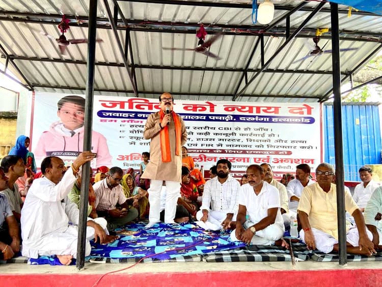 Darbhanga News: केवटी. मुख्यालय परिसर में सोमवार को जवाहर नवोदय स्कूल पचाढ़ी के छात्र जतिन गौतम की मौत पर न्याय नहीं मिलने के विरोध में क्षेत्र के लोगों ने अनिश्चितकालीन धरना जगदीर यादव की अध्यक्षता में शुरू कर दिया. वहीं रोशन झा के संचालन में सभा हुई. इसमें वक्ताओं ने कहा कि हम सब सिर्फ जतिन के लिए नहीं, बल्कि हर उस बच्चे के लिए खड़े हैं, जिसकी सुरक्षा का वादा सरकार और संस्था करती है, लेकिन निभाया नहीं जाता. गत आठ जुलाई को केवटी की मुखिया रुबी कुमारी के पुत्र 13 वर्षीय जतिन गौतम की मौत जवाहर नवोदय विद्यालय पचाढ़ी में हो गयी. इसके एक माह बाद भी न तो किसी की गिरफ्तारी हुई और न ही निष्पक्ष जांच ही की जा रही है. पुलिस मामले को दबाने की कोशिश कर रही है. न्याय दिलाने के लिए समाज के लोगों को धरना पर बैठना पड़ा. मांगें नहीं मानी गयी तो जल्द ही आमरण-अनशन शुरू किया जायेगा. वक्ताओं ने मौत मामले की सीबीआइ से जांच कराने व दोषियों को कड़ी से कड़ी सजा देने की मांग की. मालूम हो कि गत आठ जुलाई को जवाहर नवोदय स्कूल पचाढ़ी में अरावली कनीय हाउस बालक में आठवीं कक्षा के छात्र व केवटी की मुखिया रूबी कुमारी के पुत्र जतिन गौतम का शव पंखे से लटक रहा था. धरना पर केवटी की मुखिया रुबी कुमारी, उनके पति संतोष कुमार साहु के समर्थन में दर्जनों लोग बैठे थे. वहीं सभा को विधायक मुरारी मोहन झा, रोशन झा, जगदीर यादव, विनोद झा, रमण कुमार मिश्र, राजीव कुमार मधुकर, रामचंद्र राय आदि ने संबोधित किया.
