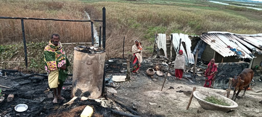 कमला बलान के बांध पर शरण ले रखे पीड़ितों पर पानी के बाद आग का कहर
