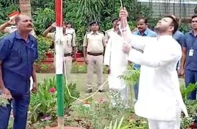 पटना. बिहार के डिप्टी सीएम तेजस्वी यादव ने अपने आवास पोलो रोड में झंडोतोलन किया, वहीं विधानसभा में अध्यक्ष विजय सिन्हा ने विधानमंडल परिसर में झंडा फहराया. राजद के प्रदेश अध्यक्ष जगदानंद सिंह ने पटना स्थित पार्टी कार्यालय में तिरंगा फहराया. तो पूर्व मुख्यमंत्री राबड़ी देवी ने अपने आवास पर झंडोत्तोलन किया. सभी जगहों पर झंडा फहराने के बाद राष्ट्र गान गाया गया. इस दौरान महात्मा गांधी और भीमराव आंबेडकर अमर रहे के नारे लगाये गये.