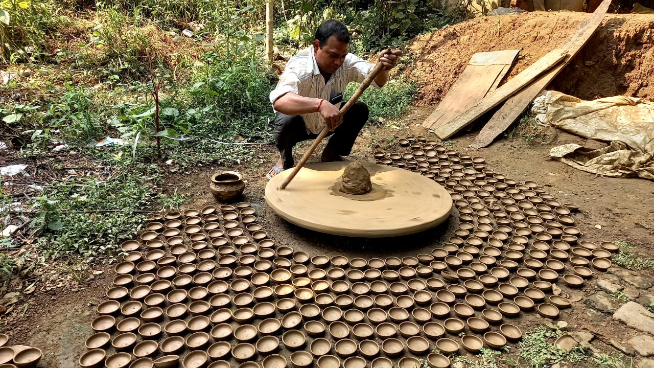 बाजार में एक तरफ जहां खरीददारी की जा रही है. वहीं, दूसरी ओर कुम्हार दीया बनाने में जुटे है.