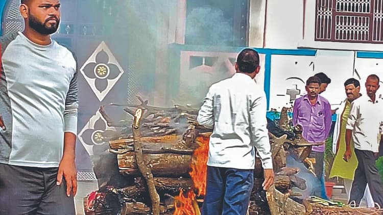 ग्रामीणों ने घर के दरवाजे पर दाह – संस्कार करने का किया विरोध