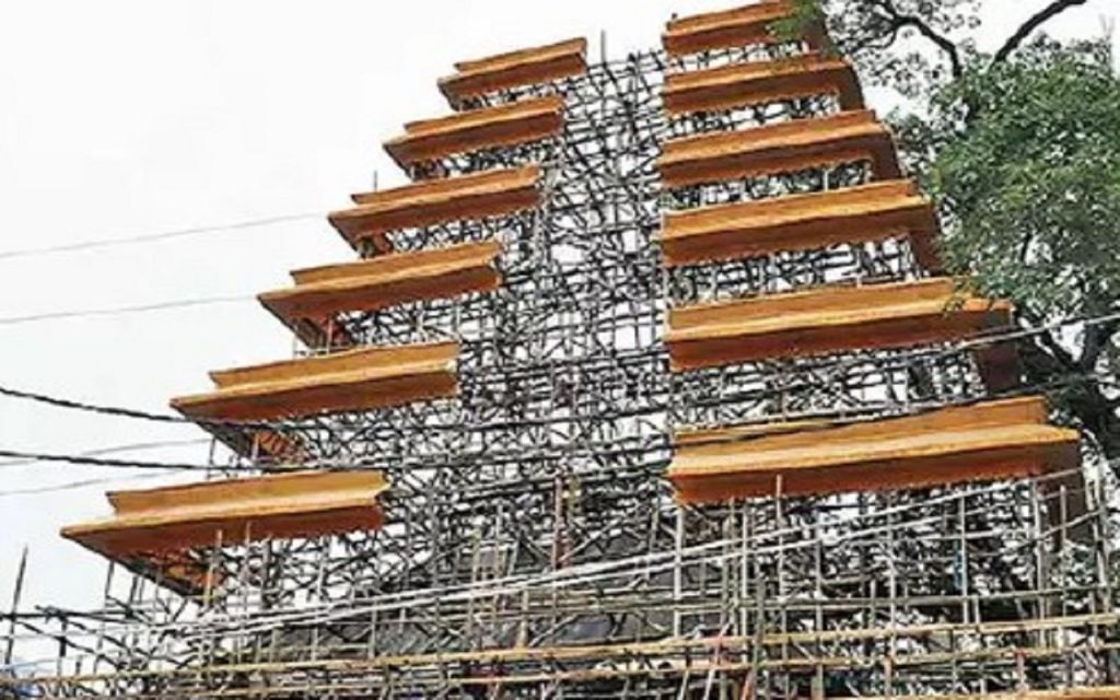 Durga Puja को लेकर Patna में पंडाल निर्माण की तैयारी जोरों पर चल रही है. हर कॉलोनी में आयोजक समिति के द्वारा पंडाल का निर्माण तेजी से किया जा रहा है. कोरोना संक्रमण के बाद इस वर्ष लोग बिना भय के आयोजन कर रहे हैं. एक से बढ़कर एक पंडाल का निर्माण किया जा रहा है. सिपारा के एतवारपुर में तमिलनाडु का मीनाक्षी मंदिर देखने को मिलेगा. यहां मां का विशेष आसन भी बनाया जा रहा है. मदुरई मीनाक्षी अम्मन टेंपल (Meenakshi Amman Temple) के निर्माण के लिए विशेष पंडाल निर्माताओं को भी बुलाया गया है. ये कारीगर बंगाल और झारखंड से आए हैं.