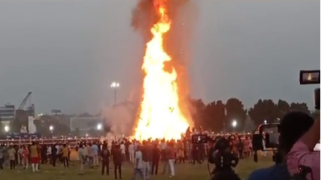 पटना में धू-धू कर जला बुराई के प्रतीक रावण का पुतला, जय श्रीराम के नारों से गूंजा गांधी मैदान