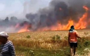 मुंगेर में ट्रांसफॉर्मर की निकली चिंगारी से तीस बीघे में लगे गेहूं की फसल जली