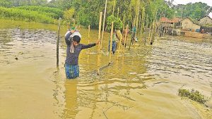 नवगछिया अनुमंडल के गोपालपुर, इस्माइलपुर व रंगरा प्रखंड के विभिन्न गांवों में गंगा नदी के पानी के जाने से बाढ़ की स्थिति बन रही है. जल संसाधन विभाग ने इस्माइलपुर से बिंदटोली के बीच तटबंध पर निगरानी बढ़ा दी है. गंगा खतरे के निशान के करीब पहुंच चुकी है. स्थानीय साइकिल सवार लोगों से तटबंध की निगरानी करवायी जा रही है. तटबंध व स्परों पर किसी समय कटाव लगने की जानकारी साइकिल सवार ग्रामीण सुरक्षा कर्मियों से मिल सकेगी. नवगछिया बाढ़ नियंत्रण प्रमंडल के अनुसार इस्माइलपुर-बिंदटोली, ज्ञानी दास टोला सहित अन्य तटबंधों पर विशेष तौर पर चौकसी रखने के लिए स्थानीय लोगों को सुरक्षा गार्ड के रूप में रखा गया है. अभियंता ने बताया कि यहां लंबा तटबंध होने से कहीं किसी तरह की कोई घटना न हो जाए, इसकी निगरानी रखने को रखा गया है. सुरक्षा बढ़ा दी गई है. अधिकारी अलर्ट मोड पर है.