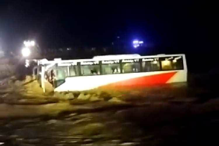 Bihar, चंद्रप्रकाश आर्य, पश्चिम चंपारण: जिले के वाल्मीकिनगर से सटे पड़ोसी देश नेपाल के बर्दघाट नारायणगढ़ सड़क खंड के दाउन्ने में विनयी खोला में गुरुवार की रात बाढ़ आ जाने से डायवर्सन टूट गया. जिससे काठमांडू से नेपालगंज की तरफ जा रही एक यात्री बस रजिस्ट्रेशन नंबर भे 1 ख 4085 बाढ़ के पानी के तेज बहाव में बह गयी.