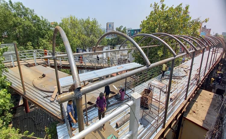 फुट ओवरब्रिज को आरओबी से जोड़ने का काम किया जा रहा