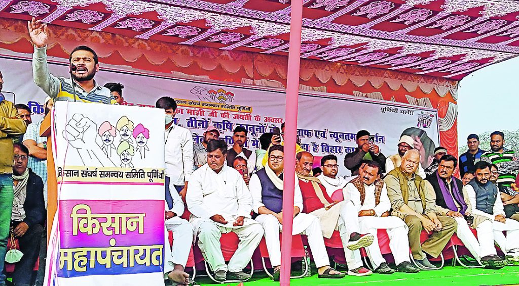 उन्होंने कहा कि सीमांचल की धरती से बिहार में किसान आंदोलन का आगाज हुआ है. कन्हैया ने किसान आंदोलन के बहाने केंद्र सरकार पर जमकर निशाना साधा और कहा है कि यह सरकार किसान विरोधी और पूंजीपतियों की सरकार है. वो गुरुवार को पूर्णिया इंदिरा गांधी स्टेडियम में आयोजित बिहार की पहली किसान महापंचायत को संबोधित कर रहे थे.