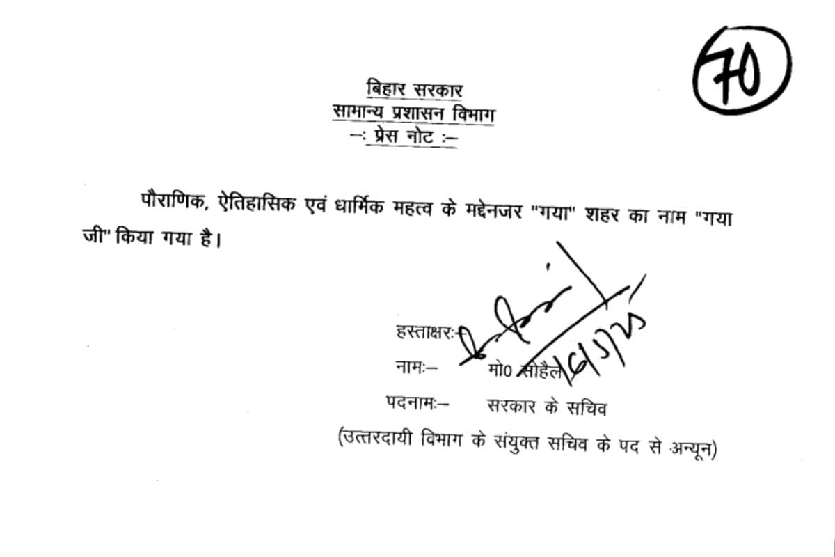 Bihar: बिहार के पौराणिक और ऐतिहासिक शहर गया का नाम बिहार की नीतीश सरकार ने बदल दिया है. शहर का नाम बदलने के पीछे बिहार सरकार ने बताया है कि गया शहर विश्व के दो बड़े धर्मों हिंदू और बौद्ध धर्म के आस्था का केंद्र है. इसलिए यह बदलाव किया जा रहा है.