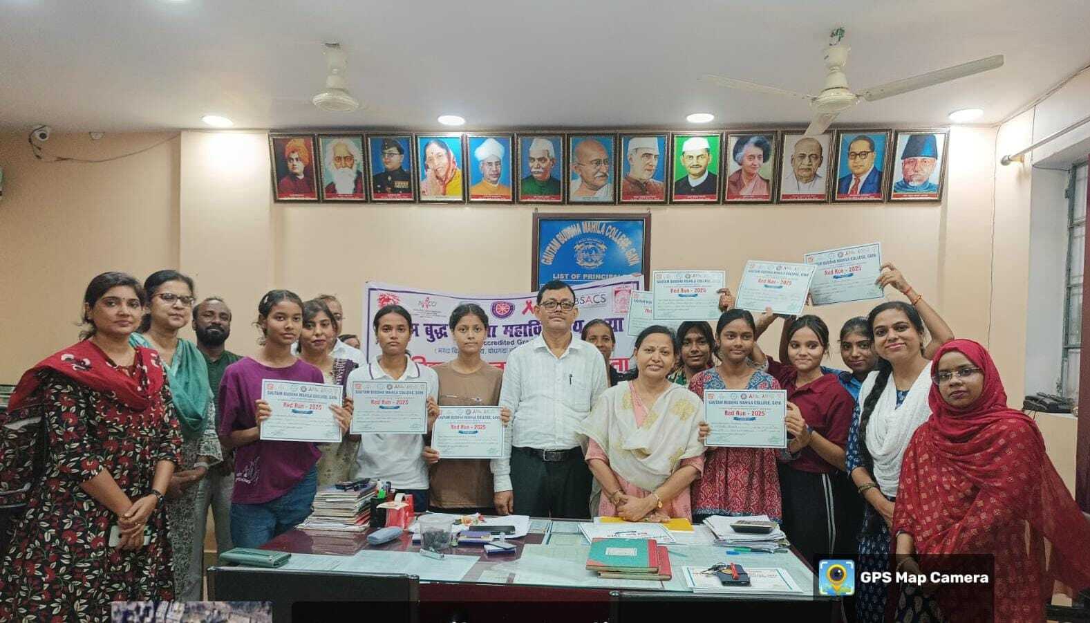 गया जी. गौतम बुद्ध महिला कॉलेज में प्रभारी प्रधानाचार्य डॉ सहदेब बाउरी के संरक्षण और एनएसएस पदाधिकारी व रेड रिबन क्लब की नोडल अधिकारी डॉ प्रियंका कुमारी के संयोजन में कॉलेज स्तरीय रेड रन प्रतियोगिता आयोजित हुई. इसमें छात्राओं ने उत्साहपूर्वक भाग लिया और 10 छात्राओं का चयन जिला स्तरीय प्रतियोगिता के लिए किया गया. चयनित छात्राओं में प्रथम स्थान पर वैष्णवी व दामिनी राज, द्वितीय पर सती व अंजलि कुमारी और तृतीय पर राजनंदन व स्वाति रहीं. वर्षा, रिशिका, रेशमा और रीमा भी चयनित हुईं. सभी को प्रमाण पत्र देकर सम्मानित किया गया. कॉलेज की पीआरओ डॉ रश्मि प्रियदर्शनी के अनुसार, रेड रन का उद्देश्य किशोरों व युवाओं को एचआइवी एड्स, किशोर स्वास्थ्य, मानसिक स्वास्थ्य और अन्य युवा स्वास्थ्य मुद्दों पर जागरूक करना है. यह प्रतियोगिता बिहार राज्य एड्स नियंत्रण समिति और एनएसीओ के निर्देशानुसार आयोजित की जाती है, जिसमें प्रतिभागियों को पांच किलोमीटर की दौड़ पूरी करनी होती है.