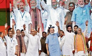 गया की सभा में पीएम नरेंद्र मोदी के साथ मुख्यमंत्री नीतीश कुमार, उपमुख्यमंत्री सुशील मोदी, लोजपा के राष्ट्रीय अध्यक्ष रामविलास पासवान, कृषि मंत्री प्रेम कुमार, एनडीए प्रत्याशी विजय मांझी, सांसद सुशील सिंह सहित अन्य नेता व कार्यकर्ता मौजूद थे.