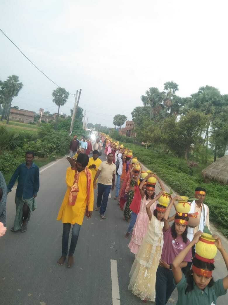 खिजरसराय. खिजरसराय प्रखंड क्षेत्र के खुदई गांव में 24 घंटे का अखंड कीर्तन को लेकर सैकड़ों श्रद्धालुओं ने कलश यात्रा निकाली. सोनसा से कलश में जल भराई कर गांव के शिवालय में स्थापित किया गया. इसके बाद 24 घंटे का अखंड कीर्तन शुरू हो गया. पिछले कई वर्षों से सावन माह में 24 घंटे के अखंड कीर्तन की परंपरा चली आ रही है. इस मौके पर गांव का माहौल भक्तिमय हो गया.