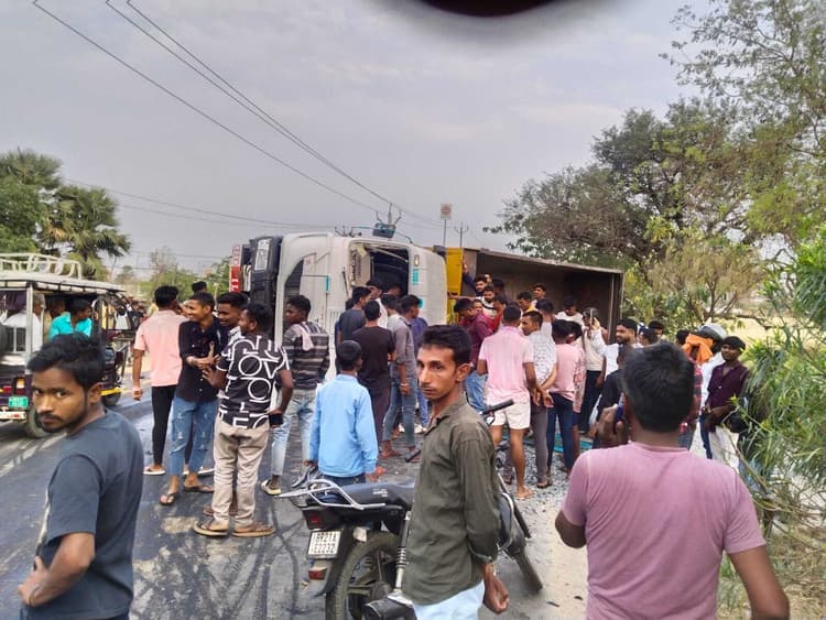 मानपुर. गया-फतेहपुर मुख्य मार्ग स्थित मंझौली गांव के समीप बुधवार की शाम अनियंत्रित हाइवा सड़क किनारे पलट गया. इस हादसे में बिजली मिस्री बाल-बाल बच गया, लेकिन उसकी बाइक हाइवा के नीचे दब गयी. जानकारी के अनुसार, इस सड़क हादसे में हाइवा का चालक व खलासी भी जख्मी हो गये. इनकाे निजी अस्पताल में भर्ती कराया गया है. इधर घटना की जानकारी पाते ही मुफस्सिल थाने की पुलिस घटनास्थल पर पहुंची व मामले की तहकीकात में जुट गयी है. जानकारी के अनुसार, हाइवा गिट्टी लेकर मानपुर तरफ से जा रहा था. तभी अनियंत्रित होकर रोड किनारे गड्ढे में पलट गया. इसमें सोहेपुर गांव के बिजली मिस्री अखंड सिंह बाल-बाल बच गये और उनकी बाइक हाइवा के नीचे दब गयी. हालांकि पुलिस मामले की तहकीकात में जुट गयी है.