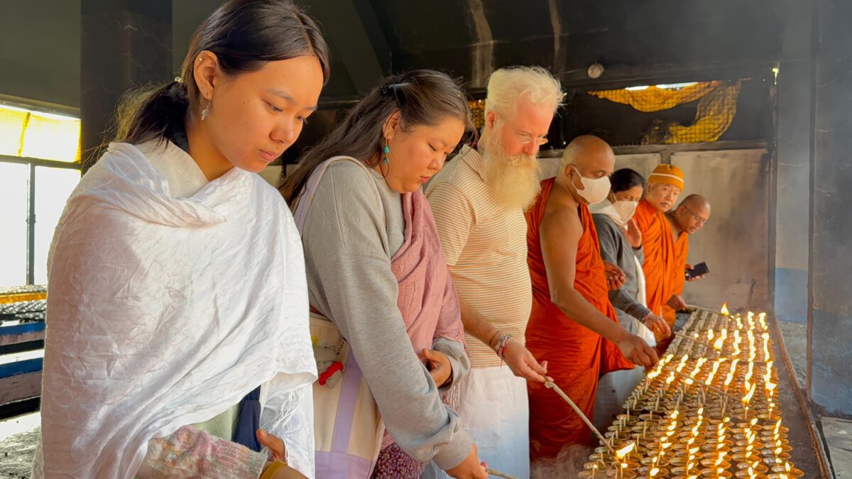 दिल्ली ब्लास्ट में मारे गये लोगों की आत्मा की शांति के लिए महाबोधि मंदिर में दीप जला कर की शांति की प्रार्थना