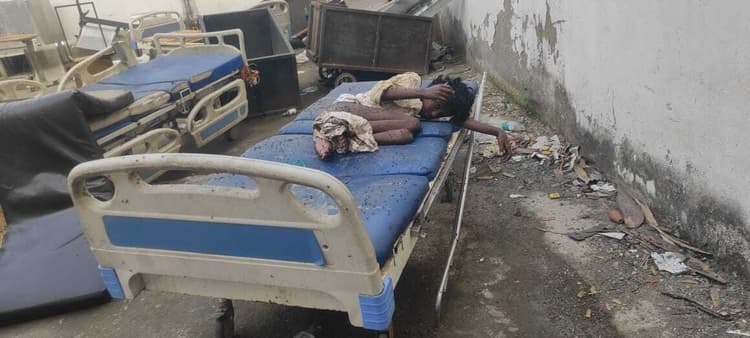 गया. एएनएमएमसीएच में मानवता को शर्मसार करने वाली तस्वीर इमरजेंसी वार्ड के आंगन में देखने को मिली. यहां पर टूटे हुए बेड पर लावारिस मरीज को खुले में ही रखा गया है. मरीज पूरी तौर से गंदा था, उसके शरीर पर मक्खियां भिन-भिना रही थी. मरीज को जिस जगह पर रखा गया है वहां पर ही कई टूटे हुए बेड भी रखे गये हैं. यह तस्वीर शायद हर किसी को परेशान व सच्चाई दिखाने के लिए काफी है. अस्पताल में कुछ दिन पहले तक लावारिस मरीजों के लिए अलग वार्ड बनाया गया था. लेकिन, जगह कम पड़ने पर सभी विभाग के वार्डों में ही लावारिस मरीजों को रखने का निर्देश दिया गया था. वार्ड में किसी भी जगह लावारिस मरीजों को रखने में आनाकानी की जाती है.