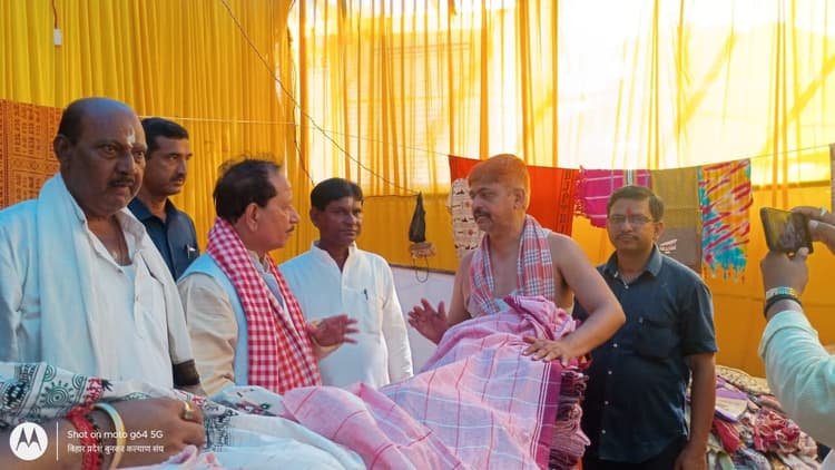 मानपुर. राष्ट्रीय पितृपक्ष महासंगम मेला 2025 के अंतिम दिन गया के सीताकुंड स्थित बिहार प्रदेश बुनकर कल्याण संघ के वस्त्र सेवा शिविर पर उपमुख्यमंत्री विजय कुमार सिन्हा का स्वागत किया गया. संघ के प्रदेश अध्यक्ष गोपाल प्रसाद पटवा ने उन्हें अंग वस्त्र भेंट कर सम्मानित किया. उपमुख्यमंत्री ने पिंडदान के लिये आए तीर्थ यात्रियों को उचित दर पर स्वदेशी वस्त्र उपलब्ध कराने के संघ के प्रयासों की सराहना की और मानपुर पटवा टोली के वस्त्र उद्योग को बढ़ाने के लिए सुझाव दिये. उन्होंने जिला प्रशासन के स्वदेशी को बढ़ावा देने वाले प्रयासों की भी प्रशंसा की. मौके पर स्टॉल प्रभारी मनोज कुमार, देवानंद पासवान, संजय कुमार सिंह, संतोष सिंह, अनिल स्वामी समेत बड़ी संख्या में भाजपा कार्यकर्ता और बुनकर मौजूद थे.