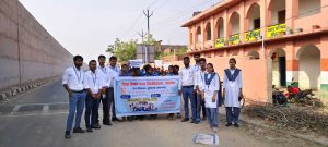 स्कूली बच्चों के साथ बीएड के प्रशिक्षुओं ने निकाली प्रभातफेरी