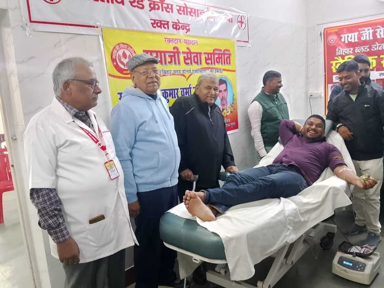 रेडक्रॉस परिसर में गया जी सेवा समिति के सदस्यों की ओर से रक्तदान शिविर का आयोजन किया गया. शिविर का उद्घाटन रेडक्रॉस के चेयरमैन उपेंद्र नारायण सिंह, वाइस चेयरमैन डॉ राम सरेख सिंह व गया जी सेवा समिति के अध्यक्ष चंदन कुमार ने संयुक्त रूप से किया. रक्तदाताओं ने बढ़ चढ़कर इस शिविर में हिस्सा लिया. रक्तदान के पश्चात उनके चेहरों पर संतोष और प्रसन्नता की अनुभूति महसूस की गयी. कुल 15 यूनिट रक्तदान किया और उन्हें प्रशस्ति पत्र देकर सम्मानित किया गया. इस अवसर पर सचिव डॉ तनवीर उस्मानी, डॉ अंबूज कुमार, डॉ प्रभात कुमार सिन्हा, रामकुमार मेहता सहित रेड क्रॉस के कर्मचारी उपस्थित थे.