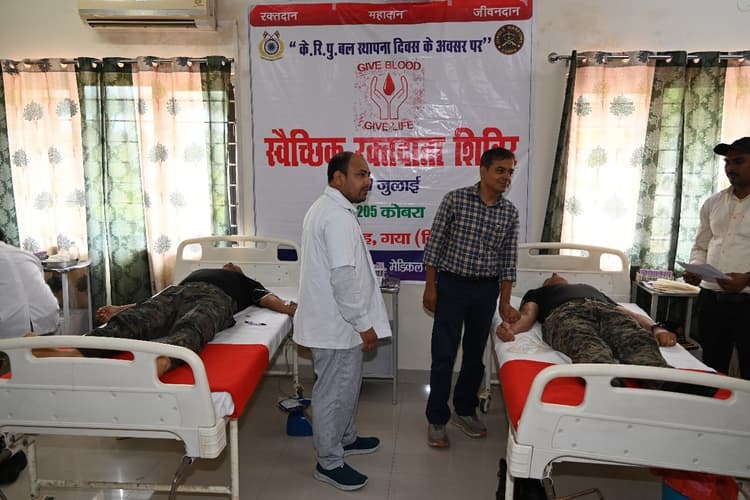 205 कोबरा बटालियन, गया द्वारा अपने 86वें स्थापना दिवस समारोह के अवसर पर रक्तदान शिविर का आयोजन किया गया, जो समाज सेवा और सार्वजनिक हित के प्रति उनकी प्रतिबद्धता को दर्शाता है. श्री नरेश पंवार, कमांडेंट, 205 कोबरा, ने स्वयं रक्तदान कर नेतृत्व का आदर्श प्रस्तुत किया और सभी जवानों को प्रेरित किया. इस शिविर में करीब 50 अधिकारियों और जवानों ने उत्साहपूर्वक भाग लिया. रक्तदान करने वालों में श्री रूप नारायण बिरोली, द्वितीय कमान अधिकारी, डीपी पांडेय, सहायक कमांडेंट प्रमुख रूप से शामिल रहे. यह आयोजन बटालियन की केवल राष्ट्र की सुरक्षा नहीं, बल्कि मानवीय और सामाजिक सरोकारों के प्रति प्रतिबद्धता को भी दर्शाता है.