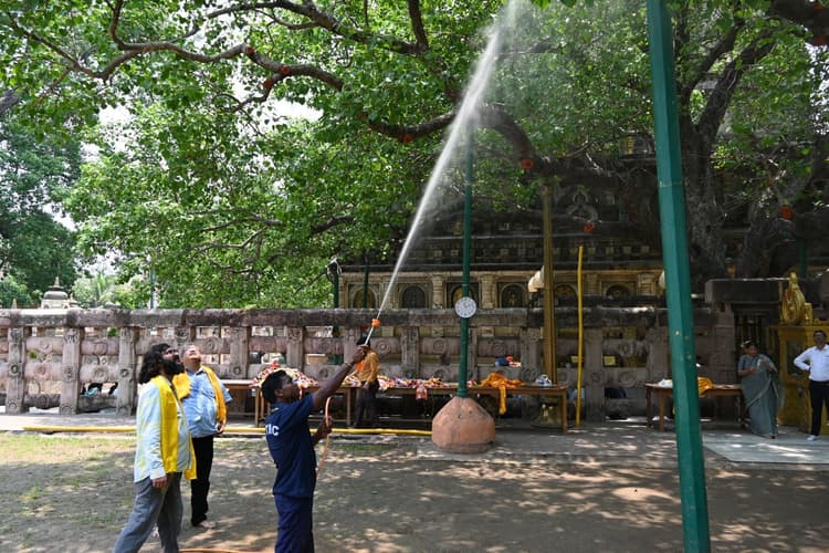 बोधगया. करोड़ों बौद्ध श्रद्धालुओं के आस्था से जुड़े विश्व धरोहर महाबोधि मंदिर स्थित पवित्र बोधिवृक्ष की सेहत पूर्णतया स्वस्थ है. बोधिवृक्ष में निकलीं नयीं पत्तियां बिल्कुल सही हैं व वृक्ष की स्थित संतोषजनक है. बुधवार को बोधिवृक्ष की नियमित जांच करने पहुंचे एफआरआइ के वैज्ञानिक संतन भर्तवाल व शैलेश पांडेय ने वृक्ष की सेहत की जांच करने के बाद इसकी जानकारी दी. उन्होंने बताया कि बोधिवृक्ष वृक्ष की सेहत आशा के अनुकूल दुरुस्त है. पत्तियां स्वस्थ हैं व मौसम को देखते हुए उन्होंने बोधिवृक्ष की पत्तियों व शाखाओं पर दवाओं का स्प्रे भी कराया. इस दौरान सूख चुकीं कुछ छोटी टहनियों को भी वैज्ञानिकों ने पेड़ से अलग कराया. उन्होंने जांच के बाद बीटीएमसी की सचिव व मौजूद सदस्यों को बताया कि बोधिवृक्ष की पत्तियां व शाखाएं पूरी तरह से स्वस्थ हैं. उन्होंने बोधिवृक्ष की बेहतर सेहत के लिए पानी की जरूरत को पूरा कराते रहना व अन्य सावधानियों का अनुपालन करने के बाबत जानकारी दी. पौधा वैज्ञानिक शुक्रवार तक यहां रह कर बोधिवृक्ष की सेहत पर नजर रखेंगे. गौरतलब है कि पवित्र बोधिवृक्ष की सेहत की रूटीन चेकअप एफआरआइ के वैज्ञानिक पिछले लगभग 17 वर्षों से कर रहे हैं. इस अवसर पर बीटीएमसी की सचिव डॉ महाश्वेता महारथी, सदस्य डॉ अरविंद कुमार सिंह, किरण लामा, महाबोधि मंदिर के केयर टेकर भिक्खु डॉ दीनानंद सहित अन्य मौजूद थे.