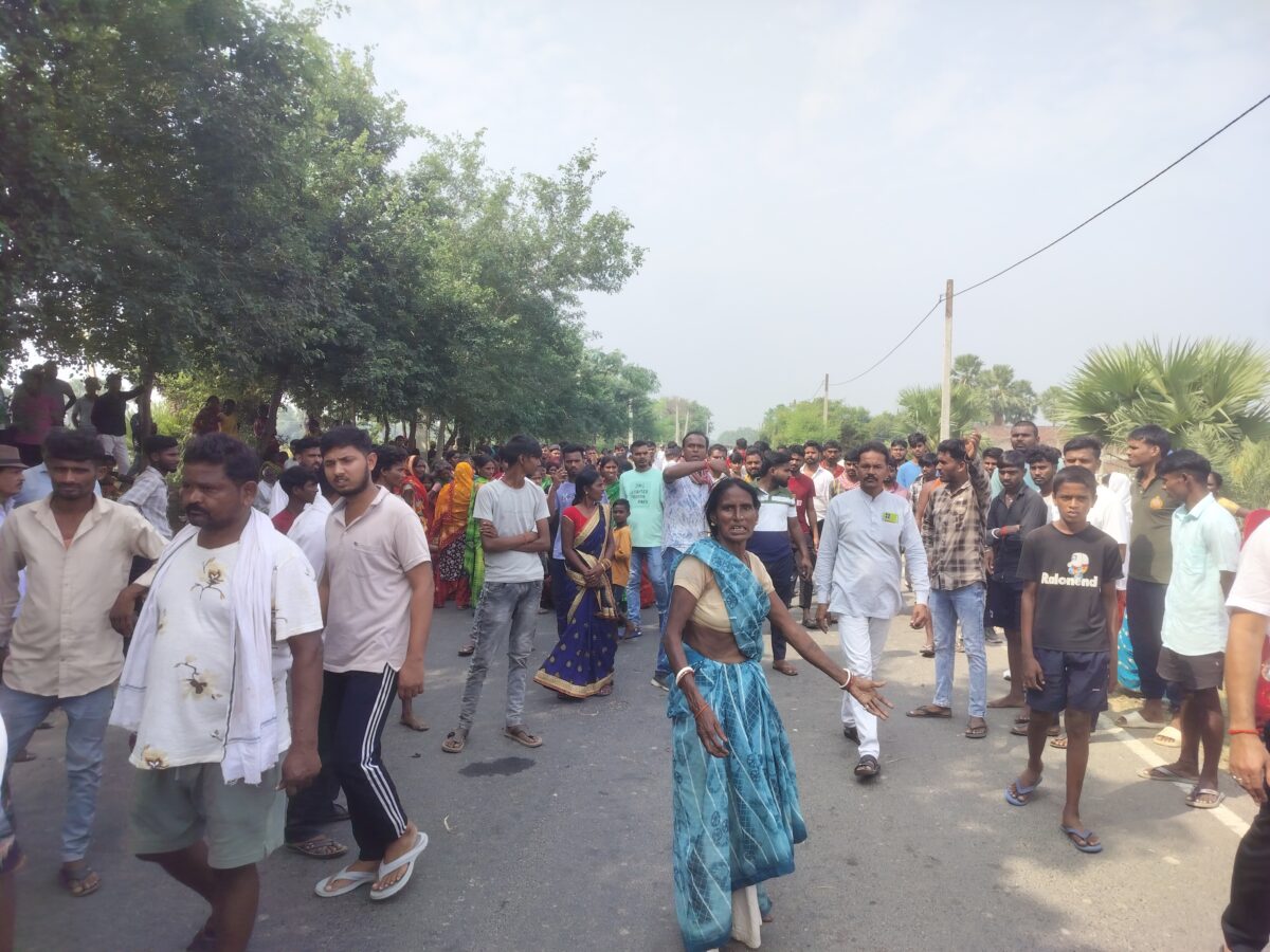 फोटो-गया-फतेहपुर-01 व 02 -सड़क मार्ग जाम करते प्रर्दशनकारी, मौके पर जुटी भीड़प्रतिनिधि, फतेहपुर