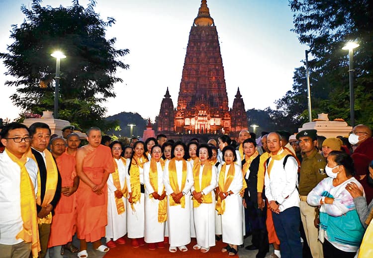 बोधगया. कंबोडिया के राष्ट्रपति की पत्नी डॉ पिच चनमोय हुन मनेट अपने कैबिनेट के शिष्टमंडल के साथ महाबोधि मंदिर में पूजा अर्चना की. उन्होंने मंदिर के गर्भगृह में तथागत बुद्ध को चीवर अर्पित किया व फूल, खीर अर्पित कर विश्व में शांति की कामना की. इसके बाद बोधिवृक्ष को नमन किया व परिक्रमा की. उन्होंने मुचलिंद सरोवर व महाबोधि मंदिर स्थित अन्य प्रमुख स्थलों का भी अवलोकन किया. मंदिर परिसर में महाबोधि मंदिर के मुख्य भिक्षु चलिन्दा, केयरटेकर डॉ दीनानंद, डॉ मनोज भंते और बीटीएमसी की सचिव महाश्वेता महारथी, सदस्य अरविंद सिंह, किरण लामा ने उनका स्वागत किया. मंदिर प्रबंधन की ओर से उन्हें खादा, बुके और मेमेंटो भेंट कर सम्मानित किया गया. उन्होंने महाबोधि मंदिर में पूजा अर्चना को सुखद बताया व विश्व में शांति की कामना की. उन्होंने कहा कि कंबोडिया और भारत के बीच धार्मिक व सांस्कृतिक संबंध प्राचीन हैं और इसे बरकरार रखने की जरूरत है. यह डेलिगेशन सोमवार की दोपहर भी महाबोधि मंदिर आयेगा व कंबोडिया के भिक्षुओं साथ कुछ देर के लिए उनका धार्मिक संवाद भी है.