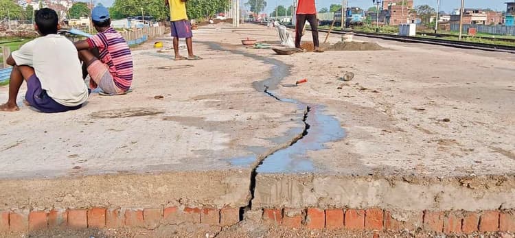 गुरारू. अमृत भारत योजना के तहत बन रहे गुरारू रेलवे स्टेशन के प्लेटफाॅर्म नंबर एक पर दरारें आनी शुरू हो गयी हैं. इस दौरान स्थानीय लोगों ने निर्माण कार्य की जांच की मांग की है. जदयू नेता सुनील पासवान ने बताया कि इस निर्माण कार्य में ठेकेदार द्वारा अधिकारियों से मिलकर लीपापोती की जा रही है. पहली ही बारिश में प्लेटफाॅर्म पर दरार आयी है. जदयू नेता ने आरोप लगाते हुए कहा कि कमीशन के चक्कर में जनता के रुपयों की बर्बादी की जा रही है. उन्होंने चेतावनी दी है कि यदि शीघ्र निर्माण कार्य गुणवत्ता के साथ नहीं किया गया, तो सड़क पर उतरकर अधिकारियों के खिलाफ आंदोलन करेंगे. जदयू नेता सुनील पासवान ने पिछले माह ही स्टेशन प्रबंधक एवं डीआरएम को लिखित शिकायत की थी. इस संबंध में गया के सहायक मंडल रेल अभियंता आरके मिनर ने बताया कि यह मामला संज्ञान में आया हुआ है. उन्होंने कहा कि जो कार्य अभी हो रहा है वह अंडर सेक्शन का मामला है. यह अभी फाइनल नहीं हुआ है. प्लेटफॉर्म में दरारें बारिश में मिट्टी दबने के कारण हुई हैं. इसको देखा जायेगा. हालांकि उन्होंने कहा कि अभी जो कार्य चल रहा है, वह फाइनल नहीं हुआ है.