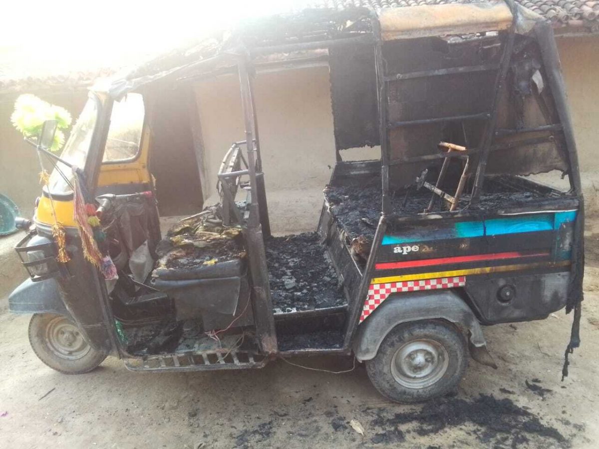 घर के बाहर खड़े ऑटो में अपराधियों ने लगायी आग