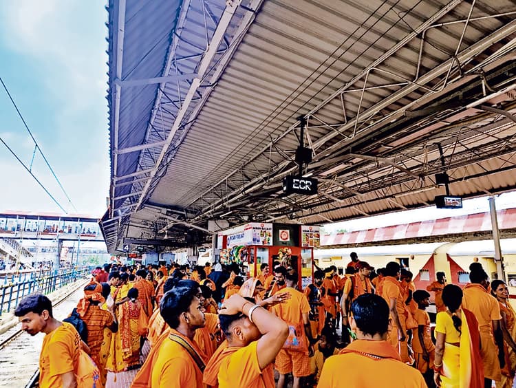 गया. अंतिम सोमवारी पर देवघर में जलाभिषेक करने के लिए रविवार को गया रेलवे स्टेशन पर श्रद्धालुओं की भीड़ नजर आयी. श्रावणी मेला स्पेशल ट्रेन व गया-हावड़ा एक्सप्रेस ट्रेन में कांवरियों का जत्था नजर आया. कांवरिये बोल-बम का नारा लगाते व नाचते-गाते ट्रेन में बैठे. इस दौरान गया रेलवे स्टेशन हर-हर महादेव व बोल-बम के नारों से गूंजता रहा. कांवरियों की सुरक्षा को लेकर आरपीएफ व रेल पुलिस की टीम हर जगह पर तैनात थी. लगातार गया रेलवे स्टेशन पर फ्लैग मार्च किया गया. भीड़ को देखते हुए सर्च अभियान चलाया गया. इसका नेतृत्व आरपीएफ इंस्पेक्टर अजय प्रकाश ने किया. यात्रियों से जागरूक करते हुए कहा कि सफर के दौरान किसी तरह की परेशानी होगी तो तुरंत प्लेटफॉर्म पर तैनात जवानों से शिकायत करें. गौरतलब है कि रेलवे की ओर से कांवरियों के लिए स्पेशल ट्रेन 21 जुलाई से से ही चल रही है. गाड़ी संख्या 03653 गया-मधुपुर श्रावणी मेला मेमू स्पेशल गया जंक्शन से शाम 05:00 बजे प्रस्थान करती है और रात 11:30 बजे मधुपुर जंक्शन पहुंचती है. वहीं गाड़ी संख्या 03654 मधुपुर-गया श्रावणी मेला मेमू स्पेशल देर रात 01:00 बजे मधुपुर जंक्शन से प्रस्थान करती है और सुबह 10:25 बजे गया जंक्शन पहुंचती है. वहीं गाड़ी संख्या 08645 रांची-भागलपुर श्रावणी मेला स्पेशल प्रत्येक सोमवार और बुधवार को रात 09:35 बजे रांची जंक्शन से प्रस्थान कर सुबह 04:10 बजे गया जंक्शन पहुंचती है. डीडीयू मंडल के सीनियर डीसीएम सुधांशु रंजन ने बताया कि कांवरियों के लिए हर व्यवस्था की गयी है. गया सहित अलग-अलग रेलखंडों पर श्रावणी मेला स्पेशल ट्रेनों का परिचालन शुरू किया गया है.स्टेशन पर शौचालय व स्नानघर के साथ-साथ बैठने व आराम करने के लिए अलग व्यवस्था की गयी है. ट्रेनों की जानकारियां देने के लिए हेल्प डेस्क की व्यवस्था की गयी है.