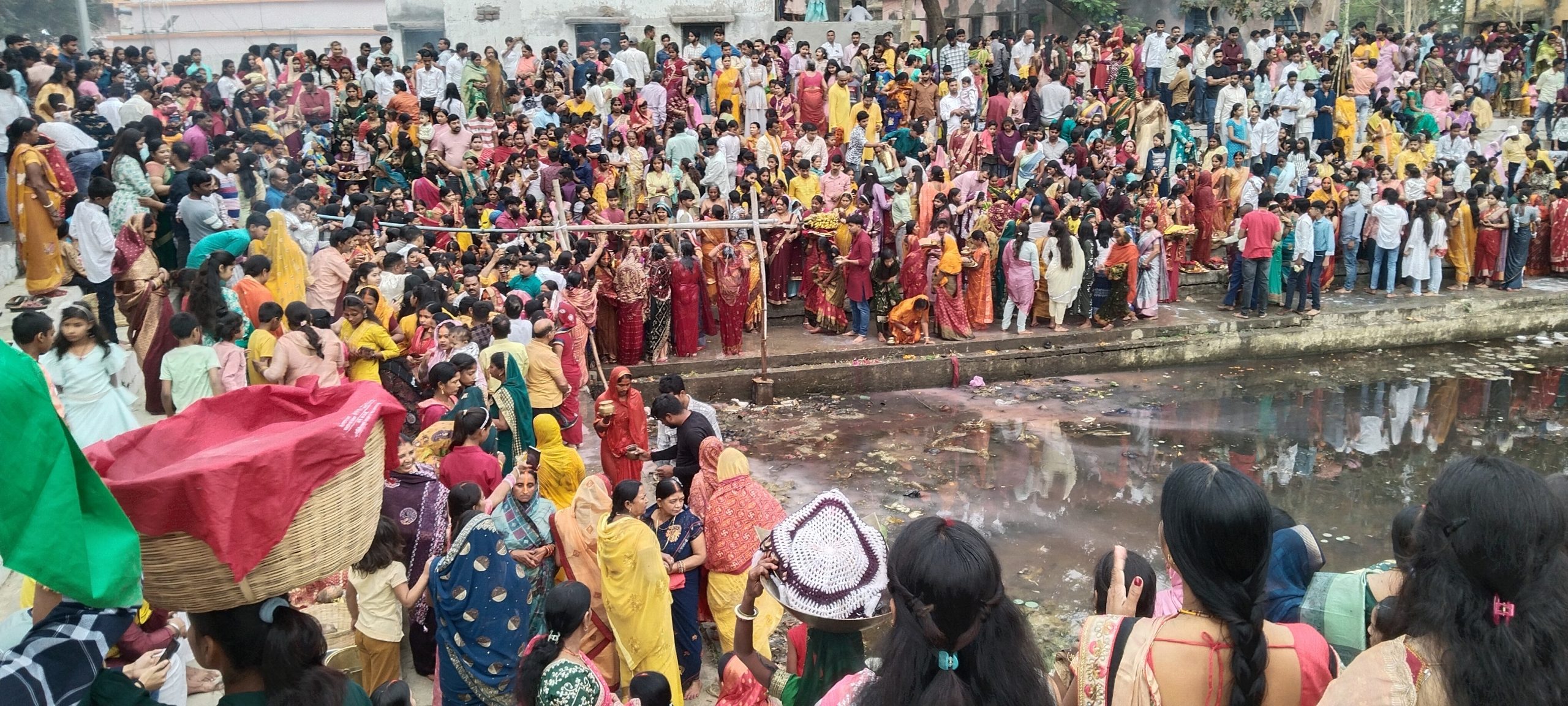 वजीरगंज. प्रखंड के शहरी व ग्रामीण क्षेत्रों में चैती छठ पर तीसरे दिन गुरुवार की शाम को डूबते हुए सूर्य को अर्घ दिया गया. वजीरगंज प्रखंड कार्यालय स्थित छठ घाट तालाब सहित तरवां बाजार, हड़ाही स्थान, कुर्किहार, दखिनगांव, पुरा, पुनावां आदि गावों में छठ घाटों पर चैती छठ महापर्व पर श्रद्धालुओं एवं छठ व्रतियों ने डूबते एवं सूर्य को अर्घ देकर भगवान भास्कर से सुख, समृद्धि व शांति की कामना की. इस दौरान वजीरगंज पुलिस पूरे दिन मुस्तैद रहा. इस मौके पर बीडीओ प्रभाकर सिंह, सीओ दिलीप कुमार व थानाध्यक्ष वेंकटेश्वर ओझा के द्वारा तरवां छठ घाट, हड़ाही स्थान छठ घाट व वजीरगंज प्रखंड कार्यालय स्थित छठ घाट पर महिला पुलिस के साथ विशेष पुलिस बल की तैनाती की गयी थी. इस छठ महापर्व में सभी छठ घाटों पर अपार भीड़ देखी गयी.