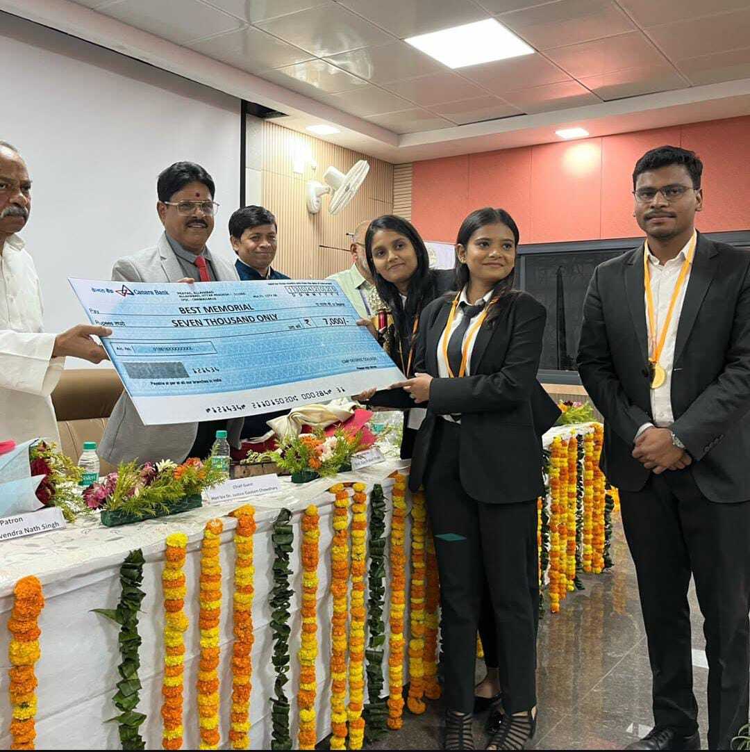 सीयूएसबी के बीएएलएलबी (ऑनर्स) के छात्रों की टीम ने प्रयागराज स्थित चौधरी महादेव प्रसाद महाविद्यालय की ओर से आयोजित प्रथम सीएमपी राष्ट्रीय मूट कोर्ट प्रतियोगिता 2025 में सर्वश्रेष्ठ मेमोरियल ड्राफ्टिंग और सर्वश्रेष्ठ वक्ता का खिताब अपने नाम किया. सर्वश्रेष्ठ स्मारक खिताब जीतने पर स्मृति शर्मा, अनन्या कुमारी और प्रेमानंद कुमार की टीम को ट्रॉफी के साथ सात हजार रुपये नकदी पुरस्कार एवं प्रमाणपत्र दिया गया. सर्वश्रेष्ठ वक्ता के लिए आस्था गुप्ता को सात हजार रुपये नकदी पुरस्कार के साथ ट्रॉफी व प्रमाणपत्र दिया गया. कुलपति प्रो कामेश्वर नाथ सिंह व कुलसचिव प्रो नरेंद्र कुमार राणा ने इस उपलब्धि पर विजेता टीम के सदस्यों को बधाई और शुभकामनाएं दीं. पीआरओ मोहम्मद मुदस्सीर आलम ने बताया कि इस उपलब्धि पर स्कूल ऑफ लॉ एंड गवर्नेंस (एसएलजी) के डीन एवं विभागाध्यक्ष प्रो अशोक कुमार के साथ विधि विभाग के अन्य प्राध्यापकों प्रो संजय प्रकाश श्रीवास्तव, प्रो पवन कुमार मिश्रा, प्रो प्रदीप कुमार दास, डॉ सुरेंद्र कुमार, डॉ पूनम कुमारी, डॉ देव नारायण सिंह, डॉ पल्लवी सिंह, डॉ अनंत प्रकाश नारायण ने भी बधाई दी है. इस उपलब्धि की प्रशंसा मणि प्रताप के साथ मूट कोर्ट सोसायटी के सह समन्वयक डॉ कुमारी नीतू व डॉ चंदना सूबा ने भी बधाई एवं शुभकामनाएं दीं. विस्तृत जानकारी देते हुए मूट कोर्ट सोसायटी के समन्वयक मणि प्रताप ने बताया कि इस राष्ट्र स्तरीय प्रतियोगिता में दो टीमों ने भाग लिया. यह प्रतियोगिता संवैधानिक, ट्रेडमार्क और खाद्य अधिनियम कानून पर आधारित था, जिसमें देश भर के प्रतिष्ठित विश्वविद्यालयों ने भाग लिया.दो टीमों ने लिया हिस्सा