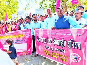 गया. डीडीयू मंडल के मंडल रेल प्रबंधक (डीआरएम) कार्यालय के सामने ऑल इंडिया लोको रनिंग स्टॉफ एसोसिएशन के बैनर तले गुरुवार को डीडीयू, गया, अंकोरहा लांबी के रेल कर्मचारियों ने अपनी पत्नी,बच्चे व अन्य परिवारों के साथ मिलकर धरना-प्रदर्शन किया. इस संबंध में मंडल सचिव डीके मिश्रा ने बताया कि पूर्व में प्रशासन को दी गयी नोटिस के आधार पर ऑल इंडिया लोको रनिंग स्टॉफ एसोसिएशन के बैनर तले अपनी वर्षों की लंबित मांगों को लेकर धरना-प्रदर्शन किया गया है. उन्होंने बताया कि मुख्य उद्देश्य रनिंग स्टाफ से नौ घंटे से ज्यादा डयूटी नहीं कराना, 36 घंटे में मुख्यालय वापसी, रनिंग रूम के खाने पीने व गुणवत्ता में सुधार, पैसा लेकर लोकल डयूटी व ट्रांसफर पोस्टिंग के खिलाफ जैसे कई मुद्दों को शामिल है. वहीं दूसरी ओर धरना-प्रदर्शन के दौरान डीआरएम ने प्रतिनिधि मंडल को आश्वासन दिया. अगर समय से मांगे पूरी नहीं हुई तो पुनः बड़ा धरना-प्रदर्शन किया जायेगा.