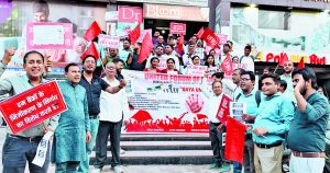 गया. बैंकों में स्टाफ बहाली, पांच दिन बैंकिंग, कार्यस्थल पर कर्मियों की सुरक्षा, अधिकारियों व कर्मचारियों की डायरेक्टर नियुक्ति सहित अन्य मांगो को लेकर बैंककर्मियों ने एक बार फिर मंगलवार शाम को केनरा बैंक क्षेत्रीय कार्यालय के समक्ष जोरदार प्रदर्शन किया. यूनाइटेड फोरम ऑफ बैंक यूनियन के बैनर तले बैंक अधिकारियों और कर्मचारियों ने अपनी आवाज बुलंद की. यूएफबीयू के चरणबद्ध कार्यक्रम के तहत बैंककर्मियों ने बाइपरटाइट सेटेलमेंट में लंबित मामलों के अलावा आउटसोर्सिंग को बंद करने, आइडीबीआइ बैंक में सरकार की 51 फीसदी हिस्सेदारी बढ़ाने, बैंको में पर्याप्त भर्ती सहित अलग-अलग मांगों को लेकर धरना-प्रदर्शन दिया. बैंककर्मियों ने वित्त मंत्रालय के मनमाने रवैये को लेकर भरपूर रोष प्रकट किया. बैंककर्मियों ने बताया कि मांगे पूरी नहीं होने पर 24 व 25 मार्च को दो दिवसीय हड़ताल की घोषणा की है. साथ ही अपने विरोध प्रदर्शन के अगले चरण में 21 मार्च को एक विशाल रैली का भी आयोजन करेंगे. सभी बैंककर्मी इन दो दिनों में नो वर्क नो पे के तर्ज पर अपना वेतन भी कटवायेंगे. इस प्रदर्शन में महिलाओं ने भी बढ़-चढ़ कर हिस्सा लिया और अपनी समस्याओं को लेकर आवाज बुलंद की. इस अवसर पर सीबीइयू के सहायक राज्य सचिव राहुल रंजन, सीबीओए के क्षेत्रीय सचिव जितेंद्र कुमार, सहायक क्षेत्रीय सचिव सुनील कुमार, चेयरमैन अजय कुमार सहित संजय कुमार, विकास कुमार, उपेंद्र कुमार, जगनारायण राम , दीपक कुमार, एसके शर्मा, हर्ष कुमार, अमित कुमार, अनिल कुमार, गौरव कुमार, शालिनी कुमारी, दिव्या कुमारी, सुमन कुमारी, कुमारी सुप्रिया, प्रीति कुमारी, खुशबू कुमारी व रेशमी कुमारी आदि ने प्रदर्शन में भाग लिया.