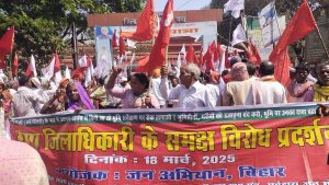 बिहार भूमि सर्वेक्षण पर रोक लगाने, भूमिहीनों को पांच डिसमिल बासगीत जमीन देने का वादा पूरा करने की मांग को लेकर डीएम कार्यालय के समक्ष जन अभियान बिहार के बैनर तले सैकड़ों ग्रामीणों ने प्रदर्शन किया.