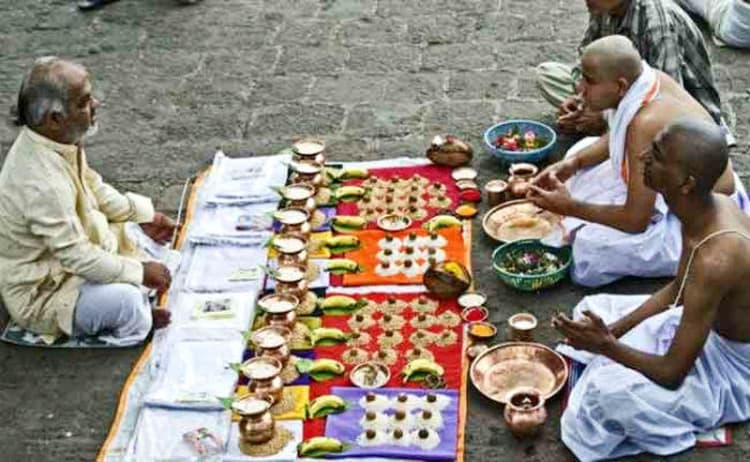 गया : वैश्विक महामारी कोरोना पर एक बार फिर लोगों की आस्था भारी पड़ी है. शुक्रवार को विष्णुपद के देवघाट व फल्गु नदी में दर्जनों तीर्थयात्रियों ने अपने पूर्वजों की आत्मा की शांति व मोक्ष प्राप्ति के निमित्त पिंडदान, श्राद्धकर्म व तर्पण का कर्मकांड संपन्न किया.