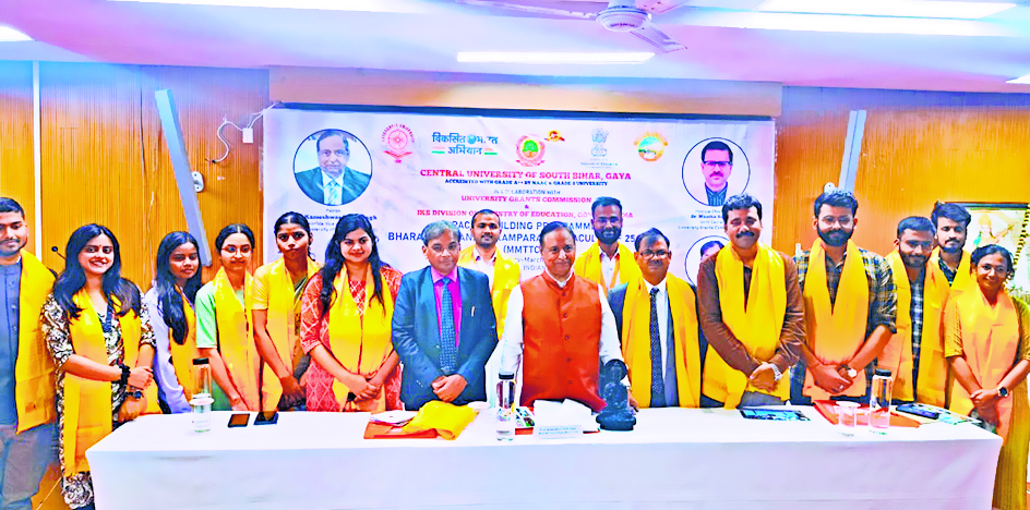 गया. सीयूएसबी के विधि एवं प्रशासन विभाग द्वारा विश्वविद्यालय अनुदान आयोग (यूजीसी) और शिक्षा मंत्रालय के आइकेएस प्रभाग के सहयोग से इंडियन नॉलेज सिस्टम (भारतीय ज्ञान प्रणाली) पर आयोजित कैपेसिटी बिल्डिंग कार्यक्रम का समापन हो गया. दिन की शुरुआत सीयूएसबी के यूजीसी सीबीपी-आइकेएस के कार्यक्रम निदेशक प्रो अशोक कुमार की देखरेख में मूल्यांकन एवं परीक्षा आयोजित की गयी, जिसमें सैद्धांतिक ज्ञान और इसके व्यावहारिक अनुप्रयोग दोनों ही शामिल थे. समापन समारोह की अध्यक्षता करते हुए कुलपति प्रो कामेश्वर नाथ सिंह ने इस बात पर जोर दिया कि शिक्षा को केवल व्यक्तिगत विकास तक सीमित नहीं रखना चाहिए, बल्कि समाज की प्रगति में योगदान देना चाहिए. उन्होंने समकालीन चुनौतियों के लिए आइकेएस आधारित समाधानों को लागू करने के लिए शैक्षणिक संस्थानों को स्थानीय समुदायों से जोड़ने के महत्व पर बल दिया. शिक्षा के गहन उद्देश्य पर प्रकाश डालते हुए उन्होंने कहा कि इसका उद्देश्य केवल नियोजन के बजाय मुक्ति, ज्ञान, नैतिक नेतृत्व और समग्र कल्याण को बढ़ावा देना होना चाहिए. प्रो सिंह ने आज की दुनिया में सॉफ्ट पावर के महत्व को भी रेखांकित किया व कहा कि ज्ञान और विवेक सामाजिक परिवर्तन के लिए महत्वपूर्ण उपकरण हैं. उन्होंने शिक्षकों से शिक्षकों और छात्रों के बीच बढ़ती खाई को पाटने का आग्रह किया और इस बात पर जोर दिया कि शिक्षक की भूमिका शैक्षणिक ज्ञान प्रदान करने से आगे बढ़कर छात्रों को नैतिक और व्यक्तिगत विकास में मार्गदर्शन व मार्गदर्शन देने तक फैली हुई है. कार्यक्रम का समापन सभी प्रतिभागियों के अभिनंदन के साथ हुआ, जिसके बाद छह दिवसीय कार्यक्रम को सफल बनाने में उनके प्रयासों के लिए गणमान्य व्यक्तियों, संकाय सदस्यों और आयोजन समिति को धन्यवाद दिया गया. पीआरओ मोहम्मद मुदस्सीर आलम ने बताया कि इस कार्यक्रम में देश भर के 25 उच्च शिक्षा संस्थानों (एमएमटीटीसी) के संकाय सदस्यों के साथ सीयूएसबी के प्राध्यापकों ने भाग लिया है.