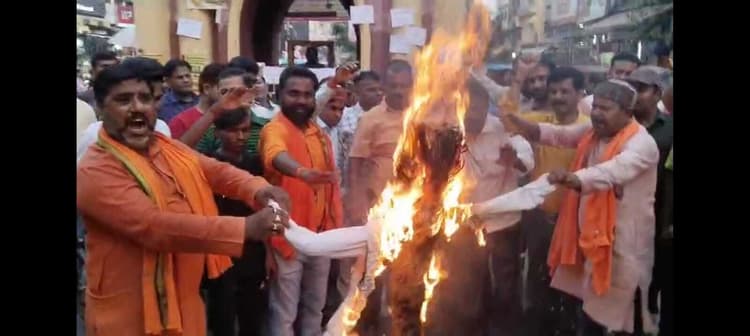 गया. पश्चिम बंगाल में हिंदुओं पर हो रहे अत्याचार के विरोध में गुरुवार को हिंदू जागरण मंच के कार्यकर्ताओं ने टावर चौक पर पश्चिम बंगाल की मुख्यमंत्री ममता बनर्जी का पुतला दहन किया. मंच के मीडिया प्रभारी अजय कुमार राजू ने बताया कि पुतला दहन से पूर्व आजाद पार्क से मंच की ओर से सरकार के संरक्षण में हिन्दुओं पर अत्याचार हो रहा है, हिन्दुओं की हत्या घर से खींच कर हो रही है, महिलाओं से बदसलूकी किया जा रहा है. उसके विरोध में जन-आक्रोश मार्च हिन्दू जिला संयोजक संजय वर्णवाल के नेतृत्व में निकाला गया जो जीबी रोड, कोतवाली होते हुए टावर चौक पहुंचकर मुख्यमंत्री ममता बनर्जी का पुतला दहन किया गया. मार्च में शामिल लोग ममता बनर्जी से इस्तीफे व राष्ट्रपति शासन लागू करने की मांग कर रहे थे. आक्रोश मार्च में संतोष पाठक, अमित कुमार, टिंकू गोस्वामी, विकास भदानी, कुंदन सिंह, राणा रंजीत सिंह, विगन विश्वकर्मा, शिव शंकर वर्णवाल सहित कई अन्य कार्यकर्ता शामिल थे.