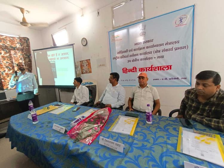 गया. सांख्यिकी एवं कार्यक्रम कार्यान्वयन मंत्रालय के राष्ट्रीय प्रतिदर्श सर्वेक्षण के गया स्थित उप क्षेत्रीय कार्यालय में तीन दिवसीय सांख्यिकी दिवस कार्यक्रम के पहले दिन गुरुवार को सांख्यिकी पदाधिकारी टेक नारायण प्रसाद के संयोजन में हिंदी कार्यशाला का आयोजन किया गया. कार्यशाला में मुख्य अतिथि के रूप में नगर राजभाषा कार्यान्वयन समिति के सचिव दिवाकर कुमार सह प्रबंधक, पंजाब नेशनल बैंक, मंडल शाखा उपस्थित हुए. इन अतिथियों ने अपने उद्बोधन में राजभाषा हिंदी का महत्व व हिंदी में कार्य करने की विस्तृत जानकारी दी. वक्ताओं द्वारा बताया गया कि कार्यशाला का मुख्य उद्देश्य शासकीय कार्य में हिंदी को बढ़ावा देना व ज्यादातर कार्यालय कार्य हिंदी में करने पर जोर देना था. सांख्यिकी पदाधिकारी टेक नारायण प्रसाद ने बताया कि अब प्रत्येक तीन माह पर हिंदी कार्यशाला का आयोजन किया जायेगा. कार्यक्रम में वरिष्ठ सांख्यिकी पदाधिकारी रौशन कुमार ने कार्यालयी हिंदी के प्रयोग पर अपना विचार रखा. कनिष्ठ सांख्यिकी पदाधिकारी अमीत कुमार वर्णवाल ने धन्यवाद ज्ञापित किया. कार्यक्रम में विभाग से जुड़े अधिकतर पदाधिकारी व कर्मचारी शामिल थे.