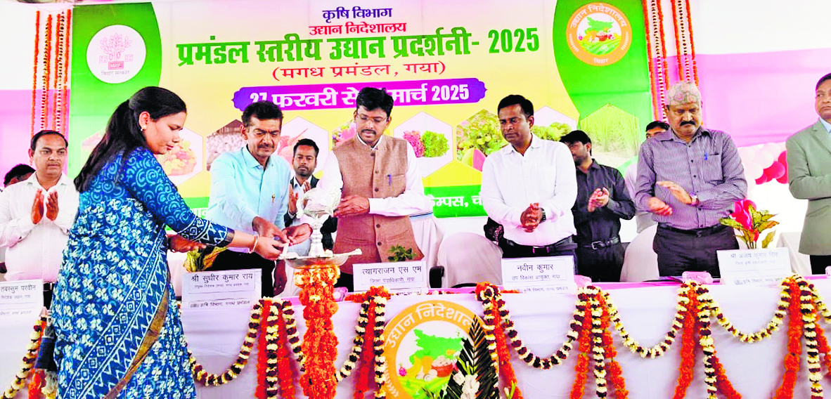गया़ शहर में प्रमंडलीय उद्यान प्रदर्शनी एवं कृषि यांत्रिकरण मेले का उद्घाटन डीएम डॉ त्यागराजन ने किया. डीएम ने उद्यान विभाग द्वारा सब्जी, फल व औषधीय पौधे से संबंधित स्टॉलों का निरीक्षण किया गया. साथ ही डीएम ने जिले में उत्कृष्ट खेती करनेवाले चार किसानों को प्रशस्ति पत्र देकर सम्मानित किया. इस दौरान शेरघाटी के श्रीकांत यादव को ड्रैगन फ्रूट की खेती के लिए सम्मानित किया गया. गया जिले में जिन किसानों के द्वारा विभिन्न फसलों का उत्कृष्ट खेती की जा रही है, इसके व्यापक प्रचार-प्रसार की आवश्यकता है. प्रदर्शनी में मुख्य आकर्षक का केंद्र आठ किलो का आलू, पांच किलो का पत्तागोभी, पुष्प व डीएवी कैंट स्कूल के बच्चों के द्वारा निर्मित रंगोली तथा पुष्प सज्जाकार रहा. प्रगतिशील किसानों के द्वारा किये गये उत्कृष्ट खेती एवं प्रत्यक्षण स्थलों पर किसानों का भ्रमण कराने का निर्देश परियोजना निदेशक, आत्मा को दिया गया.