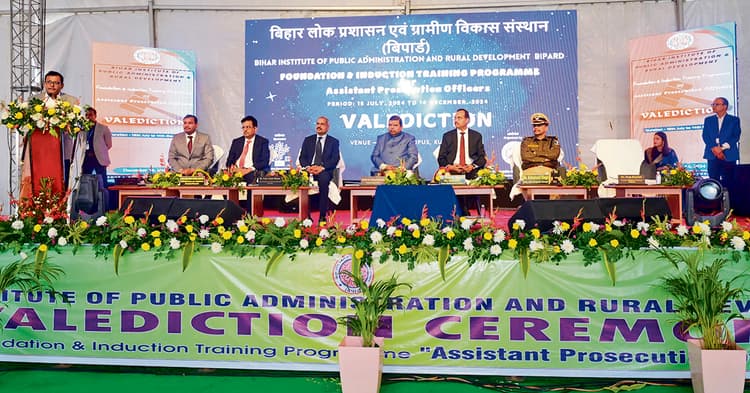 गया. बिहार लोक प्रशासन एवं ग्रामीण विकास संस्थान (बिपार्ड) ने बिहार लोक सेवा आयोग द्वारा चयनित सहायक अभियोजन पदाधिकारियों के लिए आधारभूत व प्रारंभिक प्रशिक्षण कार्यक्रम का सफलतापूर्वक समापन शनिवार को किया. इस दौरान 495 पदाधिकारियों ने प्रशिक्षण पूर्ण किया. समापन समारोह के मुख्य अतिथि के रूप में पटना उच्च न्यायालय के जज डॉ अंशुमन शामिल हुए. वहीं बिपार्ड के अपर महानिदेशक सह मगध आयुक्त प्रेम सिंह मीणा, आइजी क्षत्रनिल सिंह, गृह विभाग के सचिव प्रणव कुमार, सुधांशु कुमार चौबे भी उपस्थित थे. यह प्रशिक्षण कार्यक्रम पांच महीने पहले शुरू हुआ था. प्रारंभ में 503 पदाधिकारियों को आधारभूत पाठ्यक्रम में और बाद में 10 पदाधिकारियों को प्रारंभिक पाठ्यक्रम में भाग लेने का अवसर मिला. गहन और समग्र प्रशिक्षण ने आपराधिक कानून, न्याय वितरण प्रणाली और नये आपराधिक कानूनों के विभिन्न पहलुओं की गहन जानकारी प्रदान की. पाठ्यक्रम में विशेष विभागीय प्रशिक्षण के साथ-साथ भारतीय प्रबंधन संस्थान बोधगया, भारतीय प्रौद्योगिकी संस्थान (आइआइटी) कानपुर, केरल न्यायिक एकेडमी, सीबीआइ एकेडमी, पुलिस अनुसंधान और विकास ब्यूरो और राष्ट्रीय अपराध रिकॉर्ड ब्यूरो जैसे प्रमुख संस्थानों द्वारा साप्ताहिक प्रशिक्षण सत्र भी शामिल थे. प्रशिक्षण की एक प्रमुख विशेषता “जीविका ” के सहयोग से आयोजित ग्रामीण इमरशन कार्यक्रम था, जिसका उद्देश्य जमीनी स्तर की समझ को बढ़ावा देना था.
