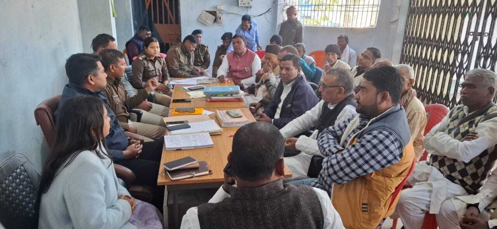 Gaya News : गुरुआ थाना परिसर में मंगलवार को सरस्वती पूजा को लेकर शांति समिति की बैठक आयोजित की गयी. इसका नेतृत्व थानाध्यक्ष मो सरफराज इमाम ने किया