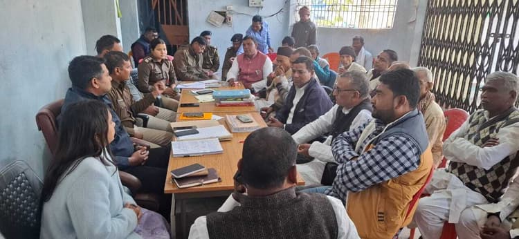 गुरुआ. गुरुआ थाना परिसर में मंगलवार को सरस्वती पूजा को लेकर शांति समिति की बैठक आयोजित की गयी. इसका नेतृत्व थानाध्यक्ष मो सरफराज इमाम ने किया. बैठक को संबोधित करते हुए बीडीओ पूजा गहलौत व सीओ अतहर जमील ने कहा कि सभी लोग आपसी सौहार्द के साथ मिल जुलकर पूजा मनाएं. किसी प्रकार की अफवाह में न पड़ें. अफवाह फैलानेवाले लोगों पर पुलिस कड़ी कार्रवाई करेगी. जरूरत पड़ने पर इसकी सूचना प्रशासन को तुरंत दें, ताकि समय से कार्रवाई की जा सके. थानाध्यक्ष मो सरफराज इमाम ने कहा कि पूजा के दौरान डीजे बजाने पर प्रतिबंध है. कोई भी व्यक्ति पंडाल के इर्द-गिर्द डीजे बजायेगा, तो पुलिस कड़ी कार्रवाई करेगी. इसके अलावे प्रतिमा विसर्जन के दौरान जुलूस के लिए लाइसेंस जरूरी है. बैठक में पूर्व मुखिया जवाहर खान, भाजपा के वरिष्ठ नेता नंदकिशोर प्रसाद,बैजूधाम के संयोजक गिरजा शर्मा, मुखिया मो अजहर आलम, पूर्व मुखिया जुम्मन खान, मुखिया परमेश्वर चौधरी, सरपंच सह भाजपा नेता मंटू सिंह, जिप सदस्य सुरेंद्र मांझी समेत बड़ी संख्या में लोग मौजूद थे.