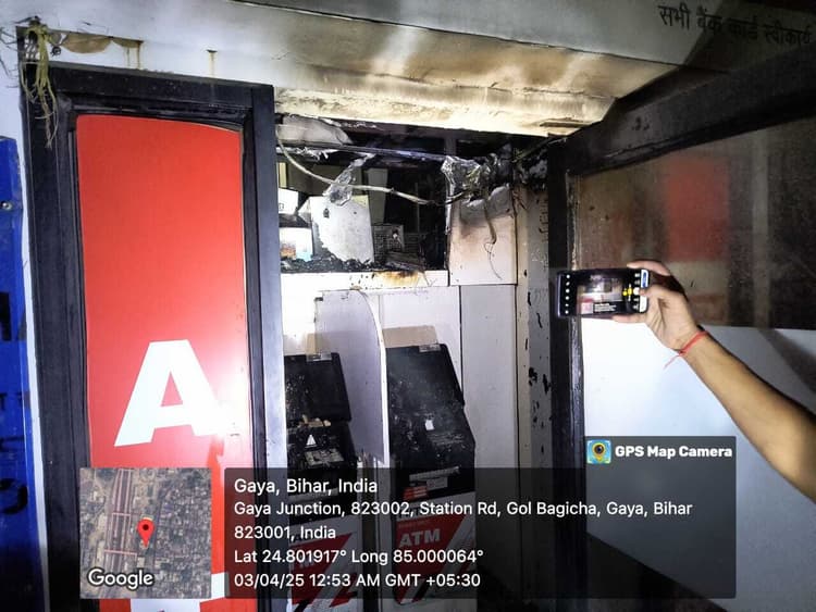 गया. गया रेलवे स्टेशन रिजर्वेशन काउंटर के पास बुधवार की देर रात करीब 12 बजे हिताची कंपनी की एटीएम में अचानक आग लग गयी. इस दौरान यात्रियों के बीच अफरा-तफरी का माहौल कायम हो गया. आग की सूचना मिलते ही फायर ब्रिगेड व रेल पुलिस की टीम मौके पर पहुंची व आग पर काबू पाया. रेल पुलिस के सहयोग से जैसे-तैसे कर नोटों को बचाया गया है. इस संबंध में पुलिस निरीक्षक सह रेल थानाध्यक्ष राजेश कुमार सिंह ने बताया कि एटीएम में आग लगने के बाद तुरंत फायर ब्रिगेड व रेल पुलिस के जवानों के सहयोग से आग पर काबू पाया गया. आसपास के लोगों ने बताया कि कुछ लोग एटीएम से पैसे निकलने आये तो मशीन से धुआं निकलता देख हल्ला मचाया. गौरतलब है कि 10 दिन पहले ही एटीएम में आग लग गयी थी. इस दौरान रेल पुलिस व फायर ब्रिगेड के सहयोग से आग पर काबू पाया गया था.